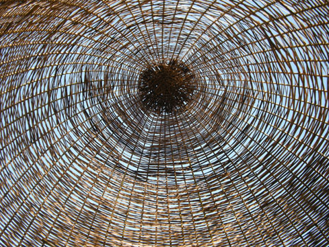 ランダムに編まれた竹のトンネルを通り籠の内部へ。