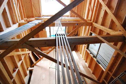 ロフトからの見下ろし。吹き抜け下はLDKになります。