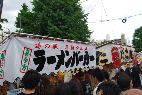 今はやりのB級グルメ、喜多方ラーメンバーガー発見。