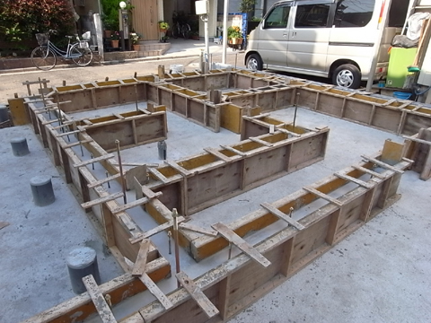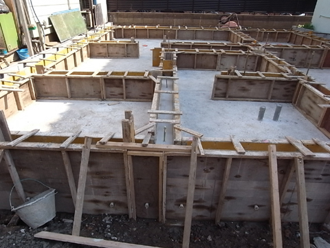 今後立ち上がり部分の型枠と、立ち上がりコンクリート打ちに入ります。